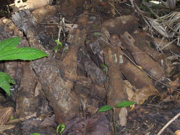 Many piles of mortar and artillery shells are scattered in the forests at Torokina.