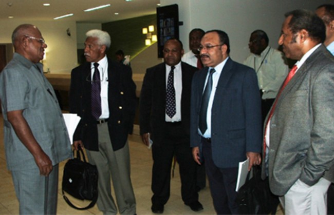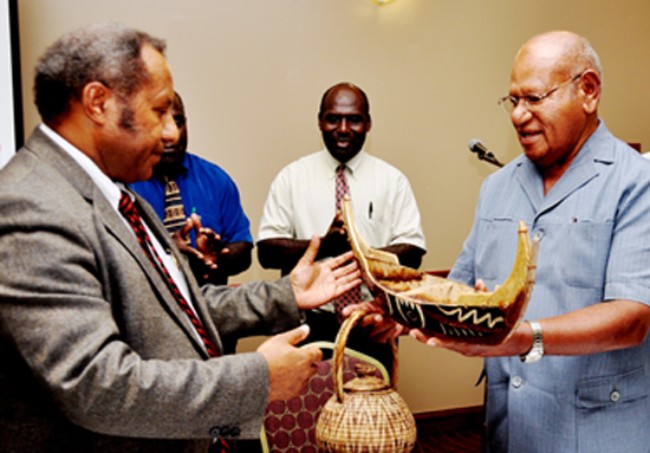 Following the ceremony Mr Ogio, who is yet to be knighted by the Queen was invited by the Speaker of Parliament for morning tea at the Parliamentary C Block that was attended by Prime Minister Sir Michael Somare, all Members of Parliament and members of the diplomatic corps and senior departmental heads.