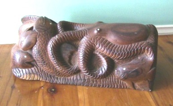 I contacted Johannes and suggested a visit, which he accepted, so Clive and I went along to their house in Austinmer. Upon meeting Johannes and his wife Emmy we were shown some of the beautiful carvings and artefacts from Bougainville including a hand-made hard wood dining table with double legs, very nicely made. He believed in the great potential for unique Bougainvillean made furniture with their prized rain forest timbers, something worth involving in their economy and trade links.