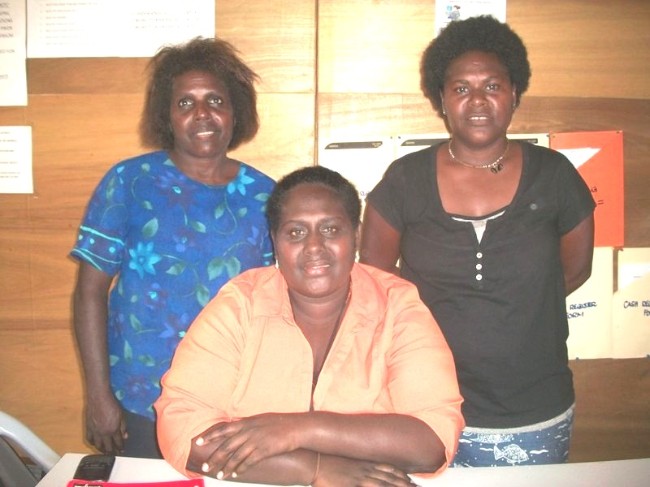Pictured are Stella Tunim Manageress(Seated Centre) and Lucy Sipara(Accounts Officer (right) and Naomi Matevai Loans Admin Officer left)