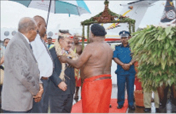 The team was welcomed at the airport by a Cultural group from Ieta village.